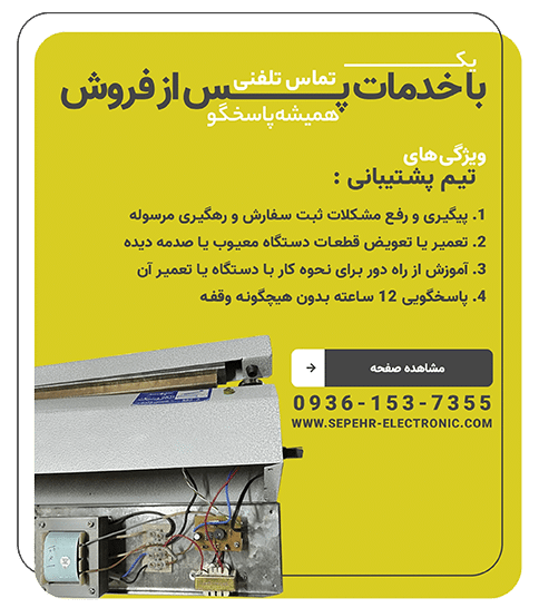 یکی از مزایای مهم خرید از سپهر الکترونیک، پشتیبانی واقعی و خدمات پس از فروش قابل اتکا است. پیش از خرید، میتوانید با مشاوران ما تماس بگیرید تا دقیقترین اطلاعات را دریافت کنید. بعد از خرید دستگاه دوخت پلاستیک حسن زاده، در صورت نیاز به راهنمایی یا خدمات، تنها یک تماس با ما فاصله دارید. برای شروع، کافی است وارد صفحه محصولات شوید و مدلها را مقایسه کنید یا مستقیماً با ما تماس بگیرید تا در کمترین زمان ممکن، شما را برای انتخاب مناسبترین دستگاه پرس دوخت پلاستیک راهنمایی کنیم. ما اینجا هستیم تا خریدی مطمئن، سریع و بدون واسطه را برای شما فراهم نماییم.