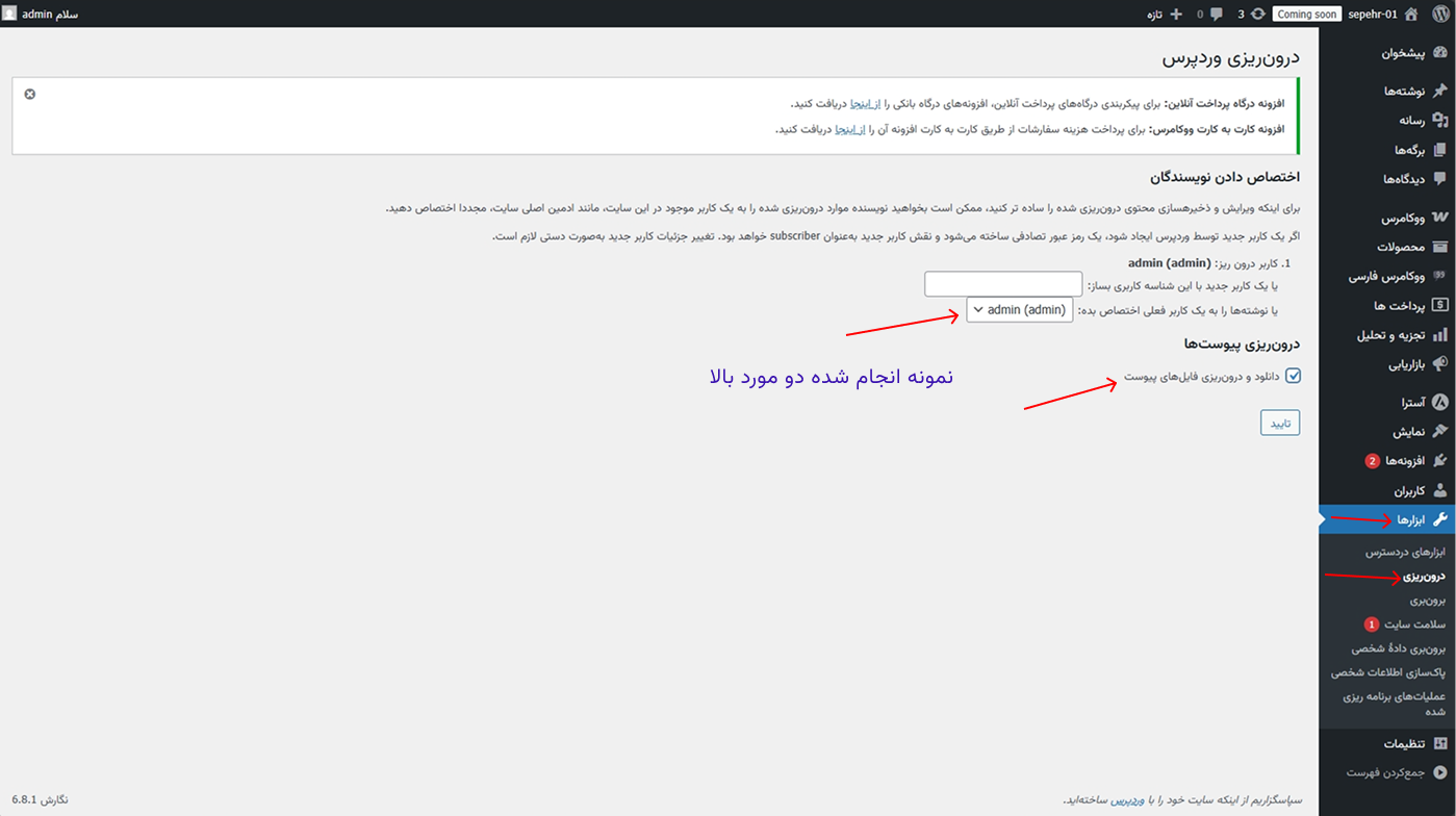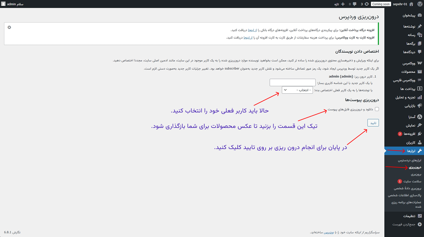 شما باید یک اسم ادمین را برای درون ریز خود انتخاب کنید.