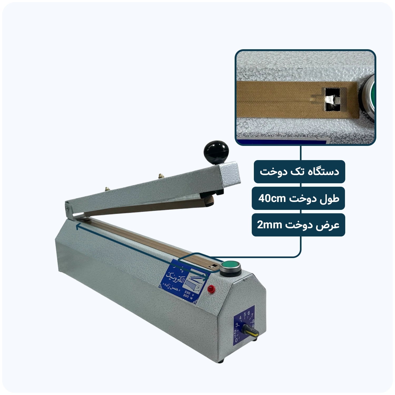 دستگاه پرس تک دوخت با طول 40 سانتی متر و عرض دوخت 2 میلی متر ابزاری قدرتمند و کارآمد برای بسته بندی طیف وسیعی از محصولات است. این دستگاه با سرعت و دقت بالا، بسته بندی را آسان و بی دردسر می کند.
