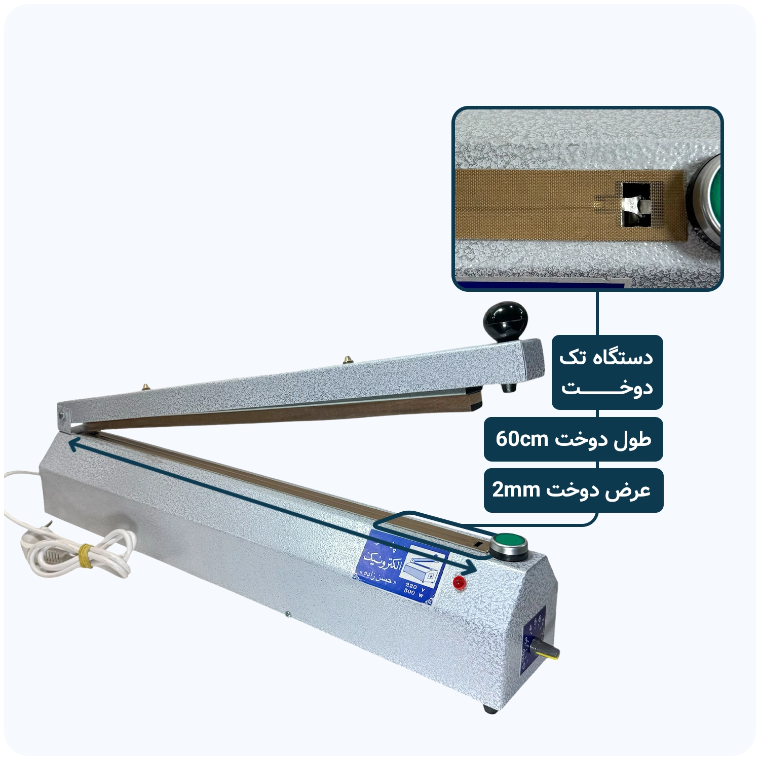 دستگاه پرس تک دوخت / طول 60cm / عرض دوخت 2mm، ابزاری ایده‌آل برای بسته‌بندی انواع نایلون، سلفون و پلاستیک در مصارف مختلف خانگی، صنعتی و فروشگاهی است. این دستگاه با عملکردی ساده و آسان، سرعت و دقت بالایی در بسته‌بندی ارائه می‌دهد و به شما کمک می‌کند تا محصولات خود را به طور امن و محکم بسته‌بندی کنید.پس سعی کنید از فروشگاه های معتبری همچون سپهر الکترونیک خریداری کنید.